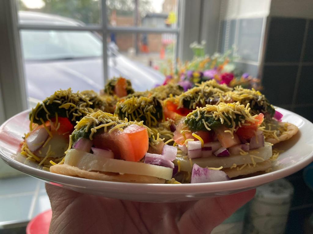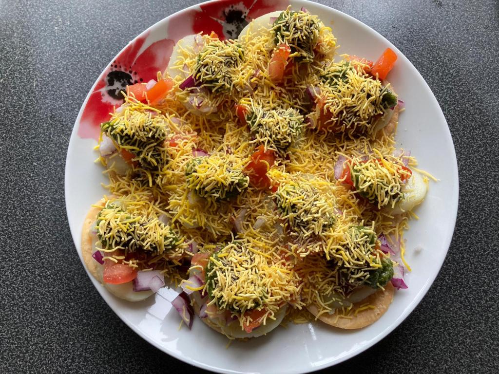 This particular street food I am referring to is called Sev Puri. It was originated in Pune, Maharashtra and is one of my favourites. Its very easy to make at home specially when you want something quick and yummy at the same time. I try to make quick and simple recipes for lunch during lockdown as I am working from home and in rush sometimes.